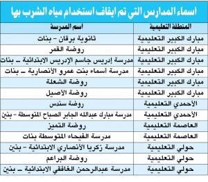 إيقاف استخدام مياه الشرب في 13 مدرسة