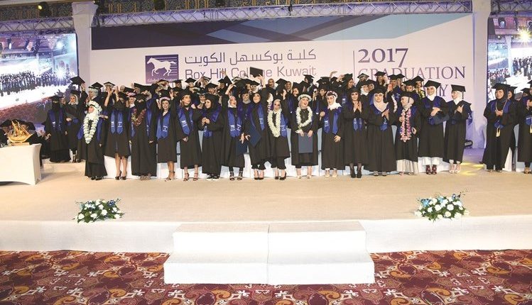 ي حفل بهيج اقيم برعاية وزير التربية والتعليم العالي د.حامد العازمي، احتفلت كلية بوكسهل الكويت بتخريج الدفعة السابعة من خريجاتها لعام 2017 والبالغ عددهن 251 خريجة وذلك مساء امس الاول في فندق الريجنسي وقد ناب عن الوزير امين عام مجلس الجامعات الخاصة د.حبيب ابل، كما حضر الحفل المستشار التجاري بالسفارة الاسترالية في الكويت جاك حجار والمدير التنفيذي لجامعة بوكسهل في استراليا ستيوارت هامفريزجراي وممثلو مجلس الجامعات الخاصة ورئيس مجلس امناء كلية بوكسهل الكويت د.عبدالرحمن الشايجي ورئيس الكلية د.علي عريفة وأعضاء مجلس الإدارة ومجلس الامناء ورؤساء الاقسام، وأعضاء هيئة التدريس، وأولياء أمور الخريجات.