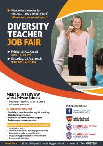 DIVERSITY TEACHER JOP FAIR تم النشر بتاريخ 2018/11/21 1٬241 1٬241 مشاركة FacebookTwitterGoogle+WhatsAppالبريد الإلكترونيTelegram