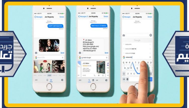 كثيرًا ما تفتح فيها متصفح سفاري Safari للبحث عن شيء ما على جوجل ومشاركة الرابط في الدردشة، مع تطبيق Gboard يمكنك الضغط على الزر G في لوحة Gboard وبدء البحث، كما يمكنك تغيير بحثك إلى يوتيوب YouTube وخرائط جوجل أيضًا.