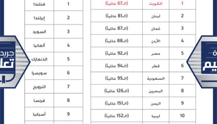 وجاء ترتيب الكويت بين دول العالم، بحسب المؤشر على النحو التالي: