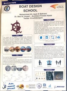 مشروع «مدرسة تصميم القوارب بعشيرج شمال الدوحة BOAT DESIGN SCGOOL ابتكراه كل من م.محمد علي، والمهندسة آيات البحراني خريجا قسم العمارة بكلية الهندسة والبترول وبإشراف د.مي حسين الأنصاري، حيث تم عرض المشروع في معرض مشاريع التصميم الهندسي الـ 35 والذي ينظمه مركز التدريب الهندسي والخريجين في كلية الهندسة والبترول بجامعة الكويت.