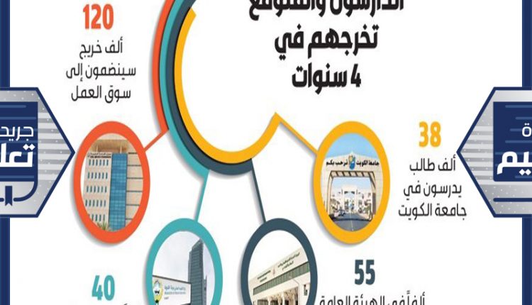 وتشير الارقام الاولية الى أن جامعة الكويت تحتضن نحو 38 الف طالبة وطالبة مقابل 55 ألفا في هيئة التطبيقي، أما الدارسون في الخارج فيتجاوز عددهم نحو 40 الف طالب، ويتضح من الارقام أن نحو 120 الفا سيلتحقون بسوق العمل بعد 4 سنوات، والسؤال هل الحكومة مستعدة لكل هذه الأعداد من الخريجين في المستقبل القريب، وهل وضعت الاستراتيجيات اللازمة لتنظيم سوق العمل، بالنظر إلى خطط الإحلال؟