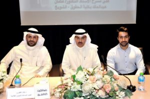 افتتح اللقاء التنويري العميد المساعد للشئون الطلابية الدكتور خالد الضفيري بالترحيب بالطلبة المستجدين وحثهم على عدم الاكتفاء بما يطرح عليهم من مقررات وإنما الحرص على القراءة والمتابعة، وبدأ بشرح نظام الدراسة السنوي المتبع في كلية الحقوق وتوضيح الجداول والنماذج لتسجيل الطلبة المستجدين وتحدث عن الفرق الدراسية الأربع وكيفية الانتقال من بينهم، مشيراً إلى ضرورة حصول الطالب على معدل لا يقل عن 70% موضحا بأن رسوب الطالب أكثر من مرتين يؤدي إلى فصله، متمنياً لهم النجاح والتوفيق في تحصيلهم العلمي.