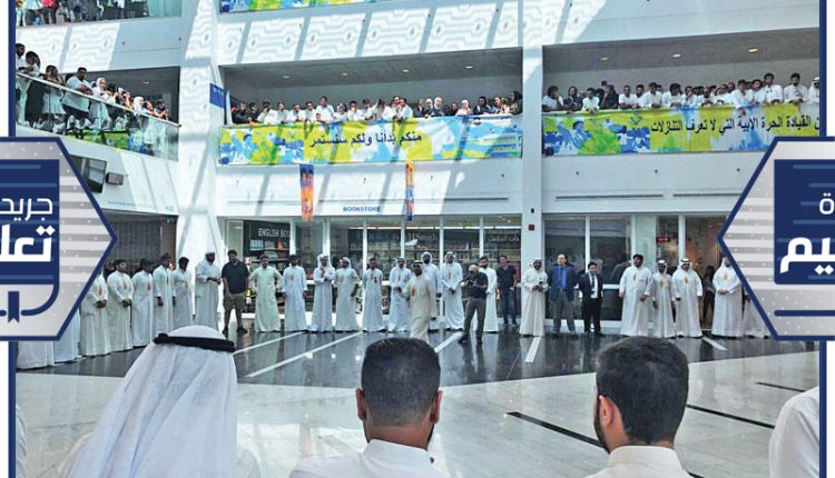 حشد أعضاء قائمة الوسط الديمقراطي بجامعة الخليج للعلوم والتكنولوجيا (GUST)، أمس، في بهو الجامعة، لإعلان خوضهم انتخابات الرابطة، وسط حضور لافت للطلبة.