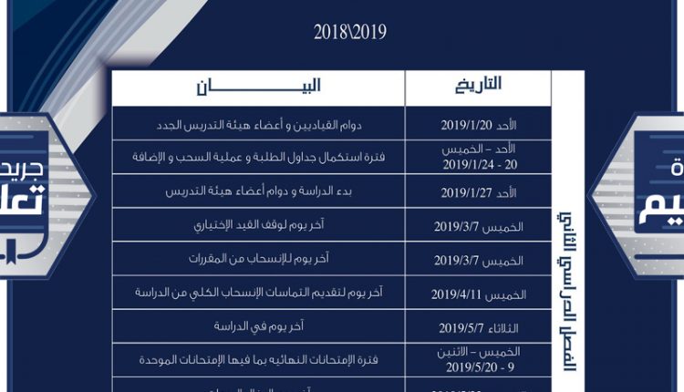 اعلنت جامعة الكويت عبر حسابها الرسمي على موقع التواصل الاجتماعي تويتر عن التقويم الدراسي للفصل الدراسي الثاني للعام الجامعي 2018/2019 .