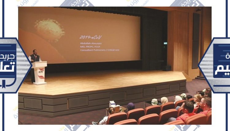 نظمت جامعة الشرق الأوسط الأمريكية ««AUM» في مركزها الثقافي محاضرة توعوية لطلابها وموظفيها حول فيروس كورونا المستجد «nCoV-2019»، بهدف نشر التوعية حول أسباب المرض وسبل الوقاية منه، خصوصا بعدما أعلنت منظمة الصحة العالمية أنه أصبح يمثل حالة طوارئ صحية عالمية بعد انتقاله من الصين إلى عدد من البلدان الأخرى.