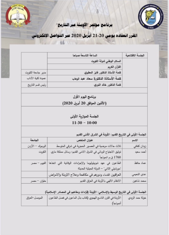 المؤتمر الدولي الالكتروني الأول لقسم التاريخ والآثار في كلية الآداب بجامعة الكويت