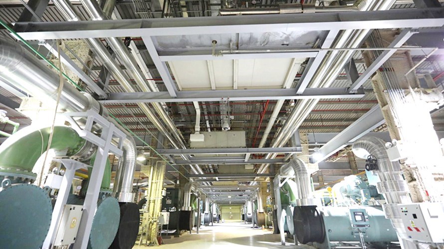 ومن الجدير بالذكر أن محطات الخدمات المركزية في مدينة صباح السالم الجامعية تعتمد آلية عمل يتم من خلالها تخزين المياه المعالجة في خزانات خرسانية قبل تبريدها، ومن ثم ضخ هذه المياه الباردة بواسطة مضخات خاصة إلى محطات الاستقبال في كل المباني الجامعية وذلك عبر أنابيب ذات أقطار كبيرة موجودة في شبكة الأنفاق الخاصة بالمدينة، وسيساهم وجود الأنابيب الضخمة داخل أنفاق الخدمات في تسهيل مهمة صيانة تلك الأنابيب وإتاحة الوصول إليها وهو ما يعد نظاما متطورا عن النظام التقليدي لتمديد شبكات المياه الذي يعتمد على دفن الأنابيب تحت الأرض.