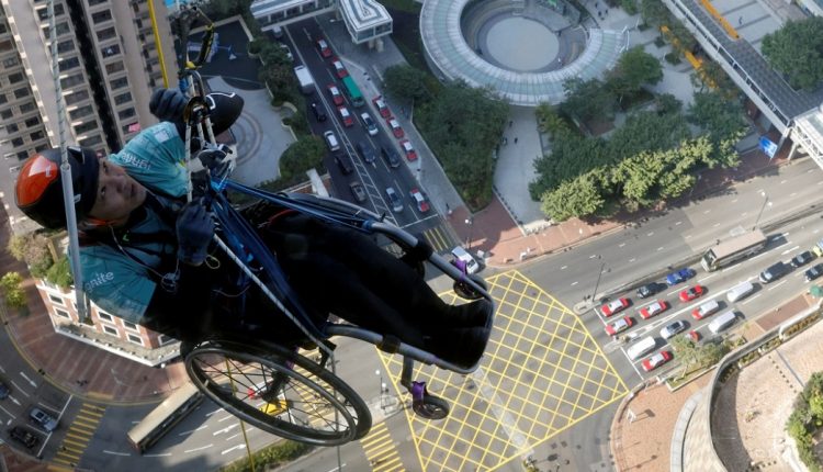أصبح لاي تشي-واي أول رجل في هونغ كونغ يتسلق أكثر من 250 متراً، من واجهة ناطحة سحاب، وهو مربوط بكرسي متحرك، حيث استغرق أكثر من 10 ساعات لتحقيق هذا الإنجاز، السبت 16 يناير/كانون الثاني 2021، من أجل جمع تبرعات لذوي إصابات الحبل الشوكي.