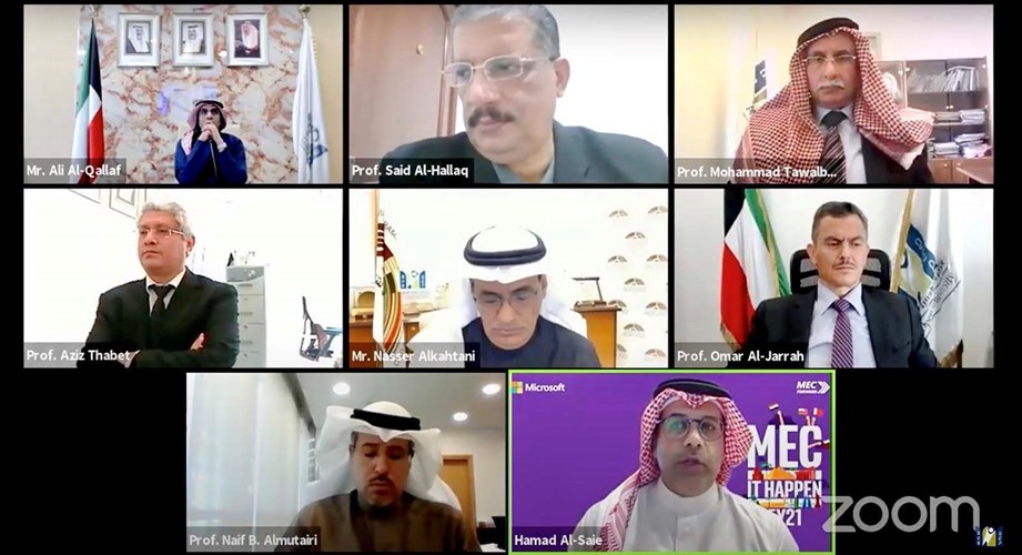 من جهته، أشار نائب رئيس الجامعة للشؤون الأكاديمية والبحث العلمي أ.د.نايف بجاد المطيري إلى جهود الجامعة في الحرص على استمرار العملية التعليمية لكل طلبتها في الكويت والوطن العربي في ظل جائحة كورونا، وكذلك تحدث نائب رئيس الجامعة لشؤون التخطيط والتطوير أ.د.عمر الجراح عن أهم الحلول التقنية التي وفرتها الجامعة للتغلب على صعوبات التعلم خلال هذه الجائحة العالمية.