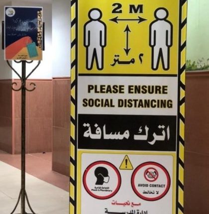وأضاف انه تمت متابعة جاهزية المدارس من قبل إدارة الشؤون الهندسية بالوزارة، لافتا إلى أنه تم توجيه الرسائل التي تحث الطلاب على الابتعاد الجسدي والالتزام بالاشتراطات الصحية.