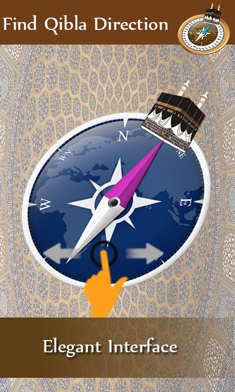 ويأتي هذا التطبيق بواجهة سهلة الاستخدام وهدف واحد، هو معرفة اتجاه القبلة باستخدام تقنية تحديد الاماكن GPS.