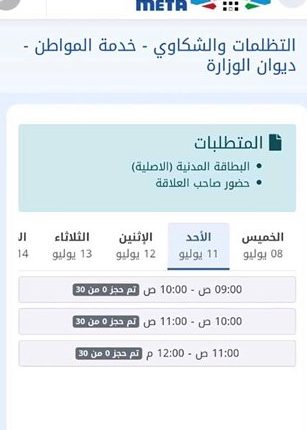 وأوضحت المصادر ان تعديل نظام المواعيد فيها يحتاج الى العودة للجهة التي أنشئت المنصة لإجراء عملية التعديل، مشيرة إلى أن ذلك قد يحتاج للعودة الى ديوان الخدمة المدنية، لاسيما أن ذلك مرتبط بالدوام الرسمي للجهات الحكومية.