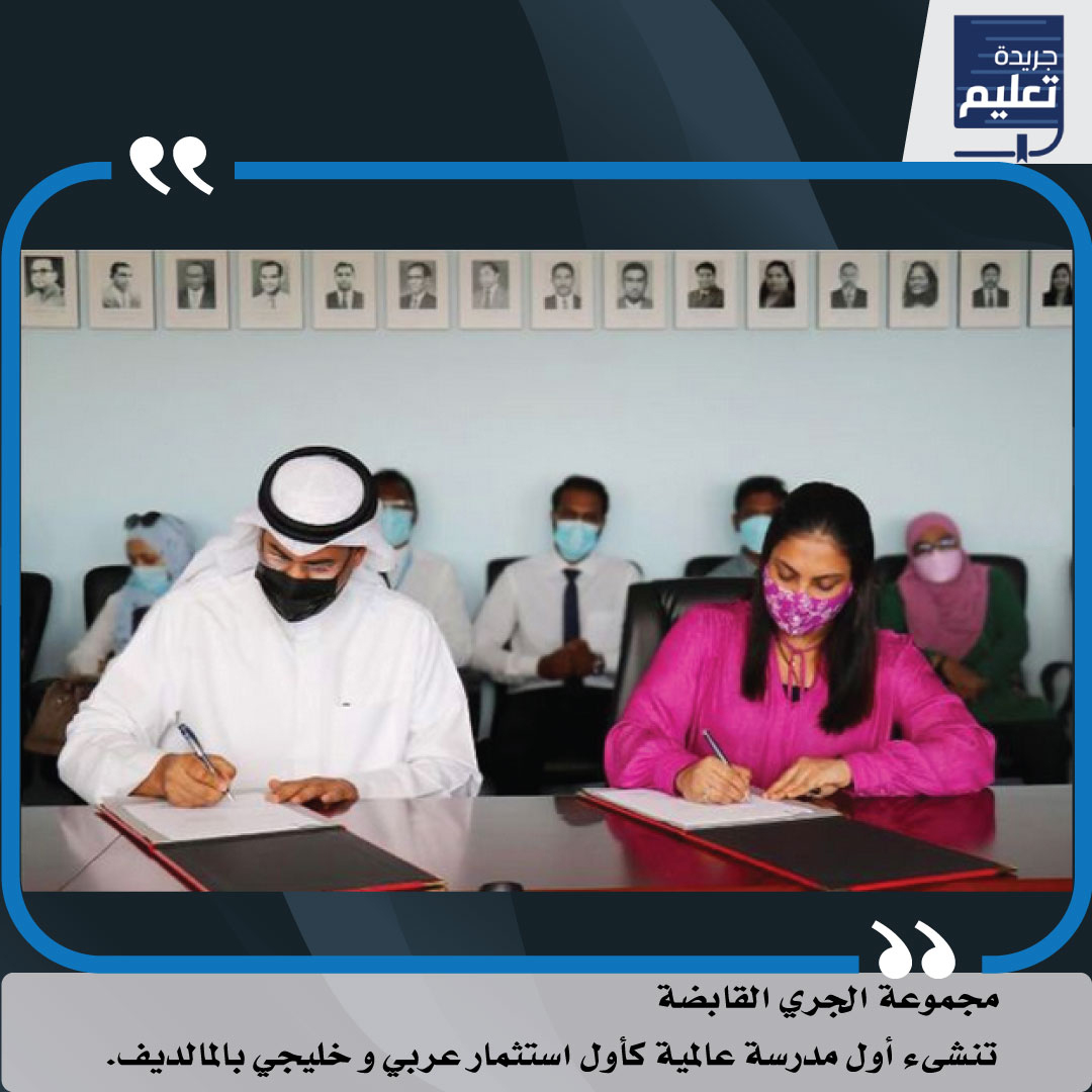 مجموعة الجري القابضة تنشىء أول مدرسة عالمية كأول استثمار عربي و خليجي بالمالديف. 🇲🇻 تم اليوم توقيع عقد بناء و إدارة مدرسة اجيال العالمية في المالديف بين مجموعة الجري القابضة ( ممثلة بالسيد/طلال خليفة الجري ) و وزارة التربية - المالديف ( ممثلة بوزيرة التربية د. عائشة علي ) و ذلك في العاصمة المالديفيه ، ماليه. تهدف الاتفاقية الى بناء و ادارة مدرسة اجيال العالمية في منطقة هولو ماليه ( العاصمة المالديفية( حيث تعتبر هذي المدرسة من اكبر المدارس مساحه في العاصمة و اكثرها تطوراً و انه نظرا لخبرة مجموعة الجري القابضة في التعليم فقد كان الهدف الاساس من الاتفاقية هو تطوير التعليم بشكل عام في المالديف.