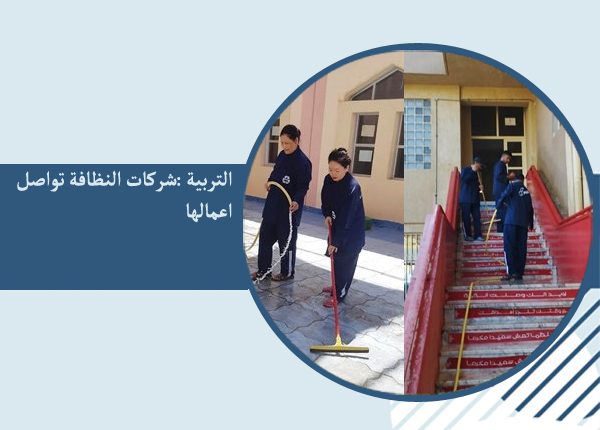 تواصل شركات النظافة أعمالها في مدارس ومنشآت وزارة التربية بمنطقتي العاصمة، ومبارك الكبير التعليميتين، استعدادا لبدء العام الدراسي الجديد 2022/2023 لتقديم خدمات التنظيف ونقل النفايات في المدارس والمنشآت التابعة لوزارة التربية في هاتين المنطقتين.
