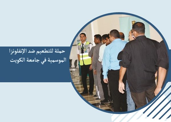 نظمت إدارة الأمن والسلامة بجامعة الكويت بالتعاون مع وزارة الصحة حملة للتطعيم ضد الإنفلونزا الموسمية لجميع منتسبي ومرتادي الحرم الجامعي بكلية العلوم الحياتية في مدينة صباح السالم الجامعية.