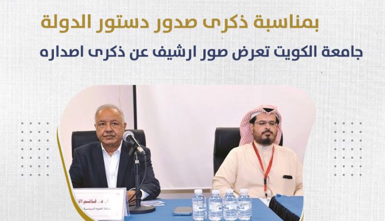 تحت رعاية مدير جامعة الكويت د.يوسف محمد الرومي نظم مركز دراسات الخليج والجزيرة العربية فعالية ثقافية بمناسبة ذكرى إصدار دستور الكويت. وتضمنت الفعالية معرضا لصور أرشيفية عن ذكرى إصدار الدستور وندوة تحت عنوان «ستون عاما على إصدار دستور الكويت» تحدث فيها أستاذ العلوم السياسية بجامعة الكويت د ..غانم النجار، وذلك في مبنى مركز دراسات الخليج والجزيرة العربية بالحرم الجامعي في الشويخ.