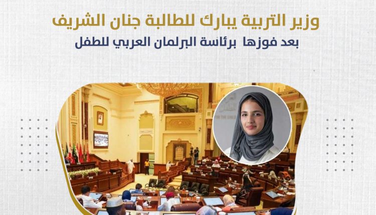 بعد فوزها برئاسة البرلمان العربي للطفل: وزير التربية يبارك للطالبة جنان الشريف