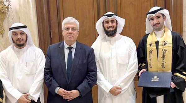 وذكرت سفارتنا بالقاهرة في بيان أن الطلبة المكرمين هم عبدالله الصفار (كلية طب الأسنان ـ جامعة الاسكندرية) وطلال حمود (كلية طب الأسنان ـ جامعة عين شمس) ومطلق الشريكة (كلية دار العلوم ـ جامعة القاهرة) مبينة أن التكريم جاء لتفوقهم وحصولهم على المركز الأول على مستوى خريجي الطلبة الوافدين الدارسين في مصر.