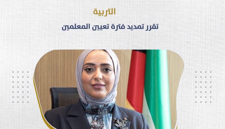 بتوجيهات مباشرة من معالي وزير التربية ووزير التعليم العالي والبحث العلمي أ.د عادل العدواني، أصدرت وكيل وزارة التربية بالتكليف أنوار الحمدان قرارًا يقضي بتمديد فترة تعيين المعلمين الجدد وتسليم مباشرة العمل، لتستمر حتى نهاية دوام يوم الخميس الموافق 2 مايو 2024، بدلا من 4 أبريل المقبل.