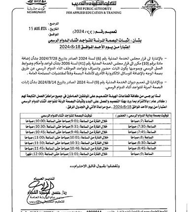 وفيما يلي التعميم وتفصيل توقيتات البصمة المرنة الخاصة بإثبات التواجد في الدوام.