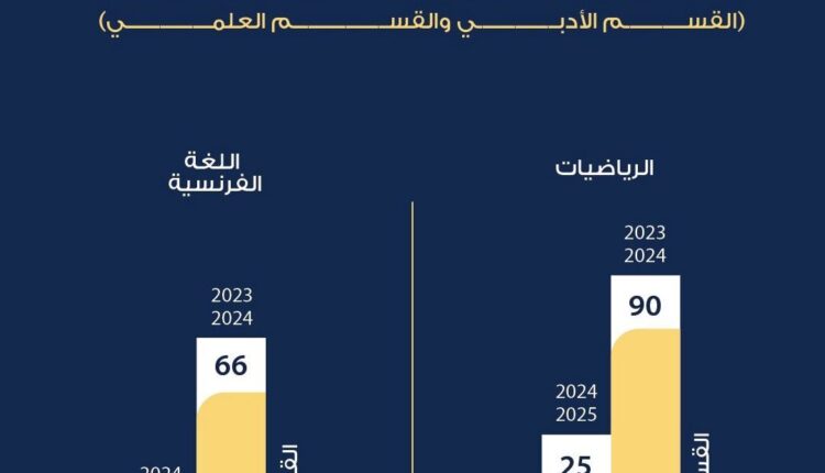 في القسم الأدبي، شهدت مادة اللغة الفرنسية انخفاضًا بنسبة 89%، مع 7 حالات فقط مقارنة بـ 66 حالة في العام الماضي.