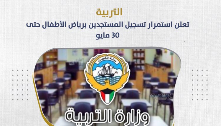 أعلنت وزارة التربية، اليوم الثلاثاء، عن استمرار تسجيل المستجدين برياض الأطفال حتى يوم الخميس الموافق 30 مايو المقبل.
